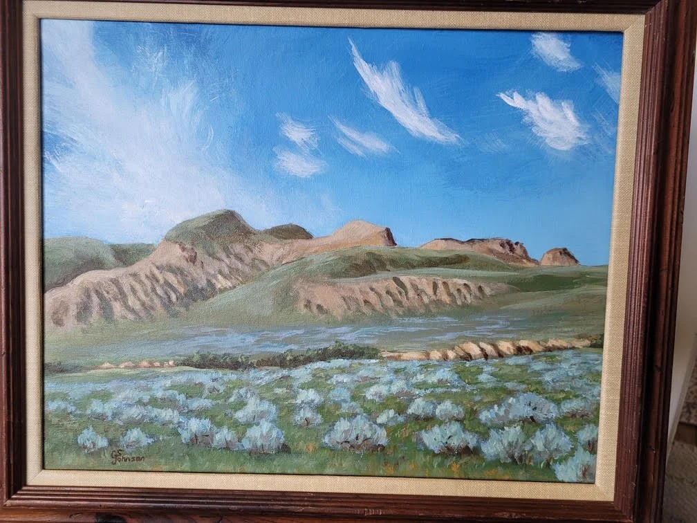 Original acrylic, 16 x 20 inches, framed and ready to hang, $400