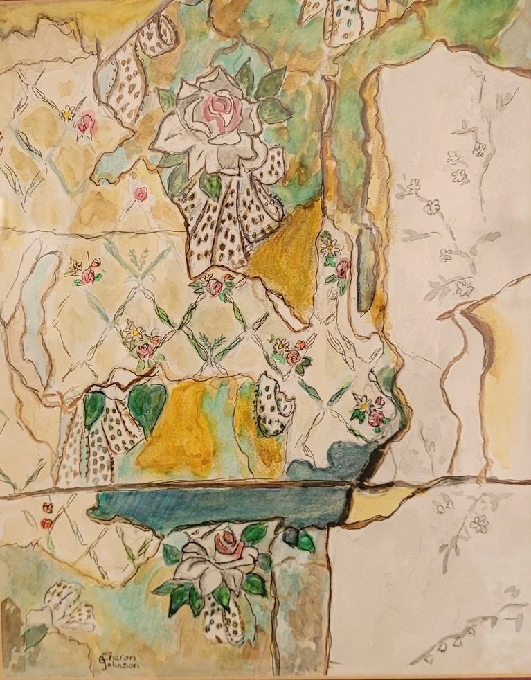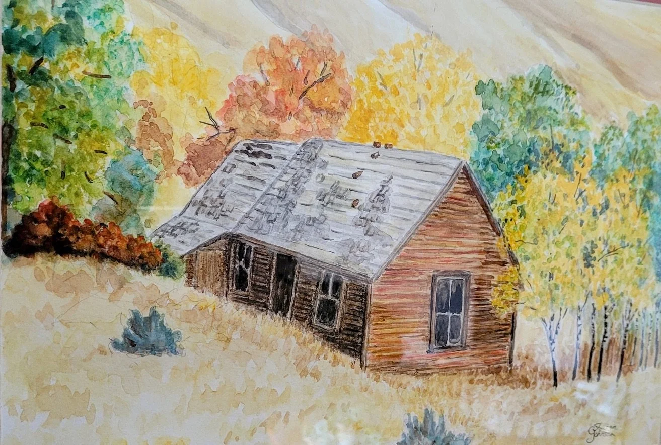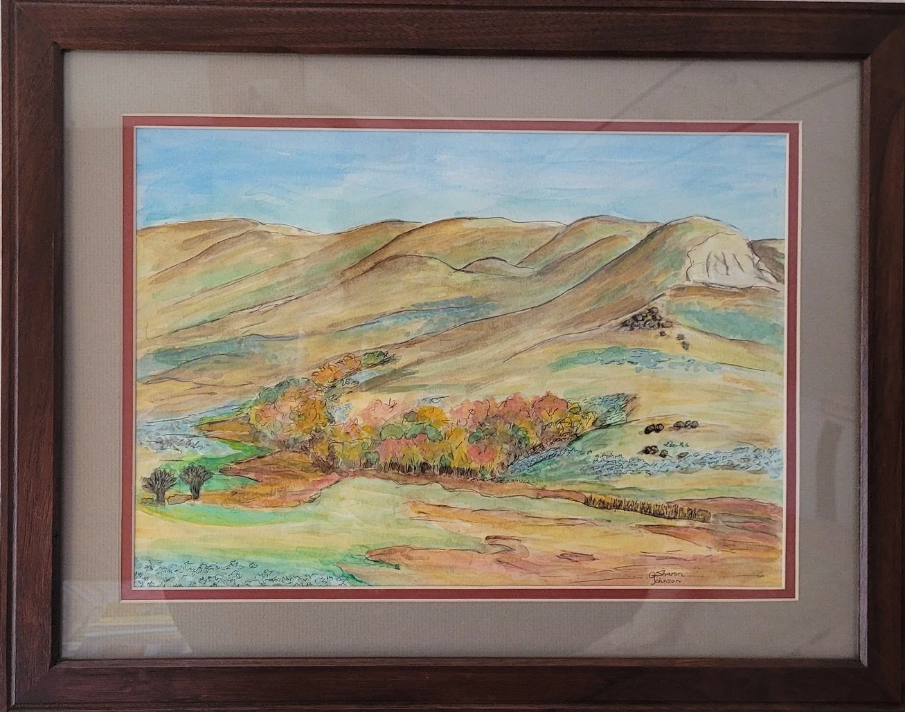 Original watercolour and coloured pencil, 9 x12 inches, framed and ready to hang, $150